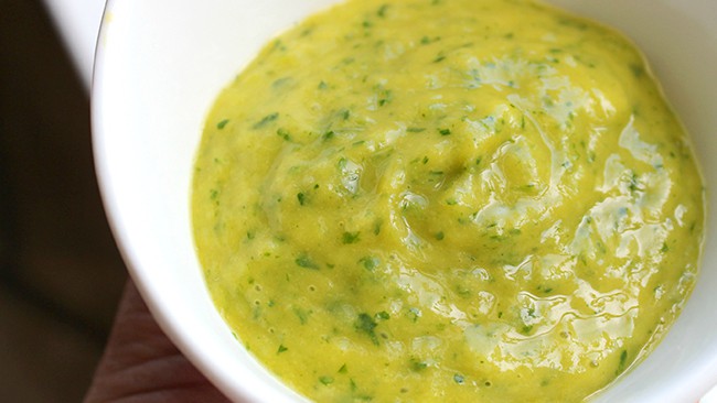 Sirve la guasacaca como acompañamiento para carnes asadas, arepas, empanadas o cualquier plato de tu elección.