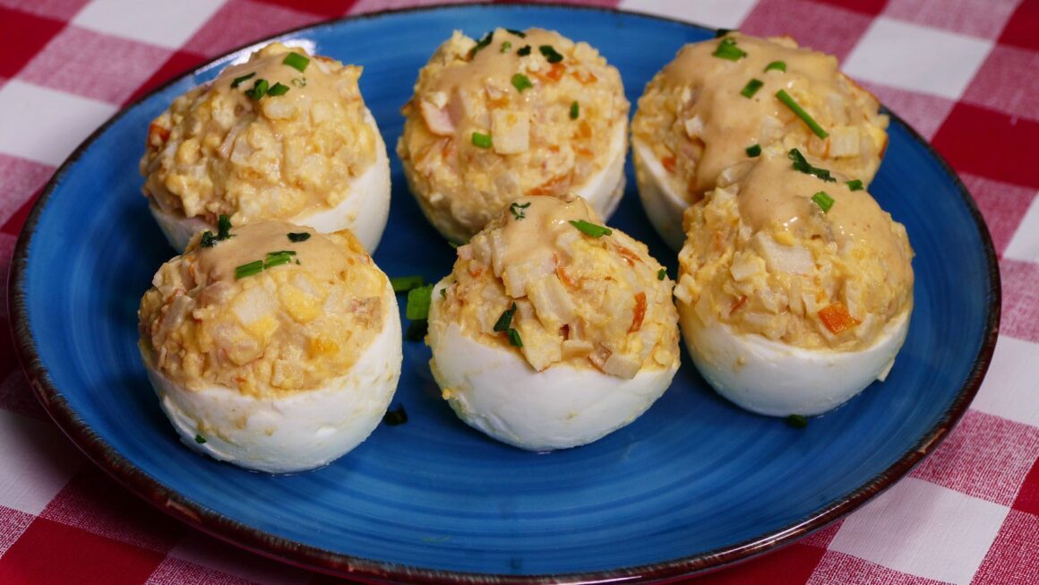 RECETA DE HUEVOS RELLENOS DE GAMBAS Y PALITOS DE CANGREJO