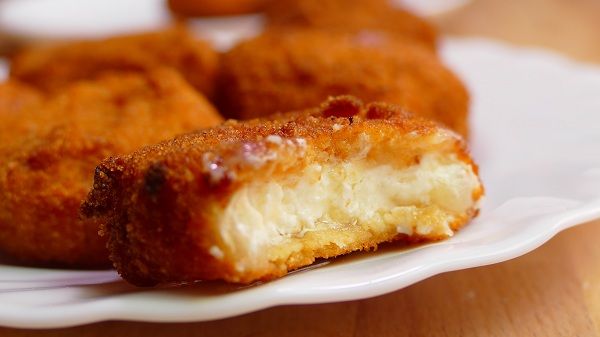 nuggets de queso de cabra abierto por la mitad donde puedes ver con detalle su resultado final.