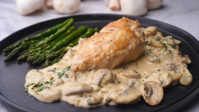 ¡Disfruta de tu deliciosa pechuga de pollo en salsa de champiñones!