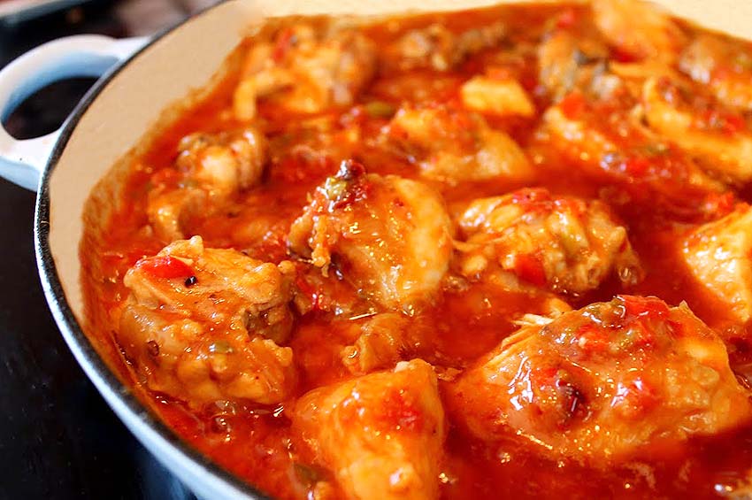 La base de este delicioso plato es el pollo, que se corta en trozos y se cocina lentamente en una cazuela con aceite de oliva. Se doran los trozos de pollo por todos los lados para sellar los jugos y luego se retiran de la cazuela. En la misma cazuela se añaden los pimientos cortados en tiras, la cebolla picada y el ajo, que se cocinan hasta que estén tiernos y ligeramente dorados.