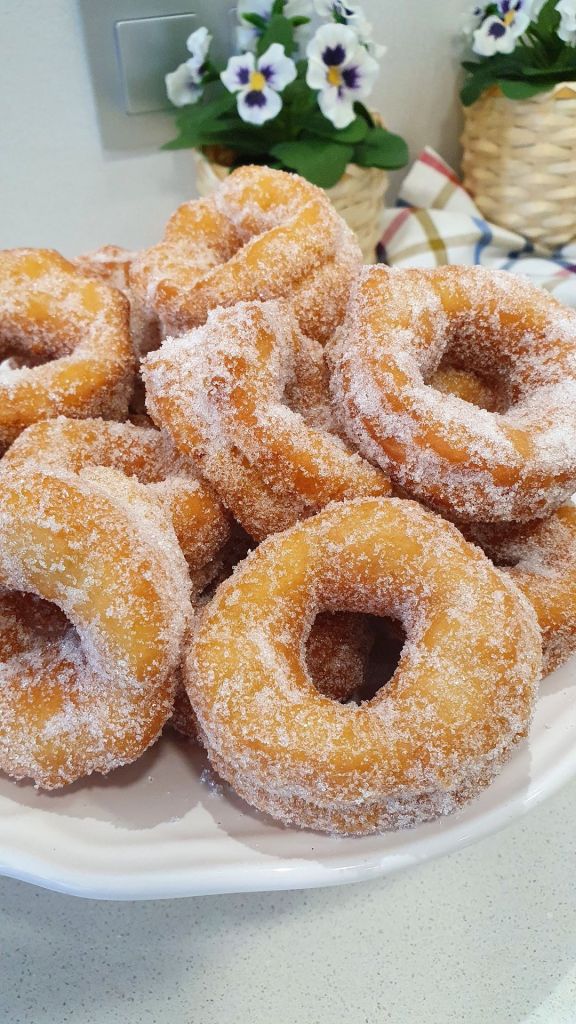 ROSCOS FRITOS de Semana Santa que vamos a tener listos en 20 minutos. Ingredientes: 2 huevos. 6 cucharadas soperas de aceite de oliva suave. 6 cucharadas soperas de azúcar. 3 cucharadas soperas de leche. 3 cucharadas soperas de zumo de naranja. La ralladura de una naranja. La ralladura de un limón. 2 pares de sobres de «gaseosas» (gasificante).