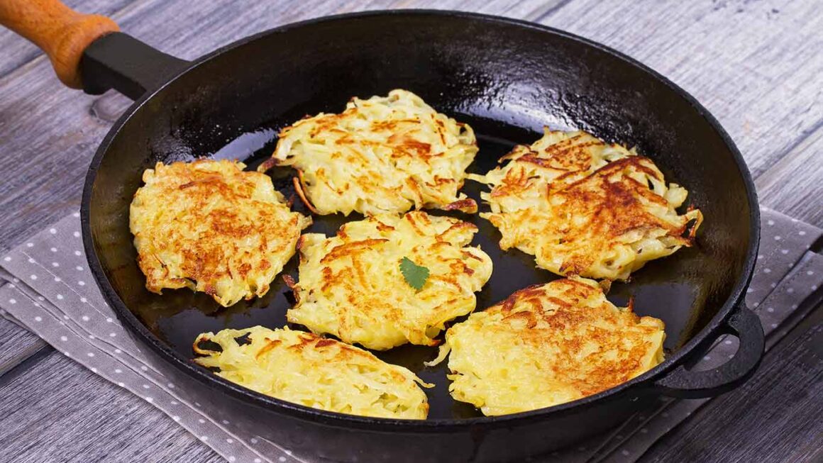 Estas tortitas de patata están geniales como aperitivo o para acompañar otros platos de carnes o verduras. Son típicas de la gastronomía alemana y se suelen vender en los puestos de comida rápida que se distribuyen por las calles de las principales ciudades, generalmente acompañadas de compota de manzana con la que se untan las tortitas y así disfrutar de un contraste de dulce y salado delicioso.