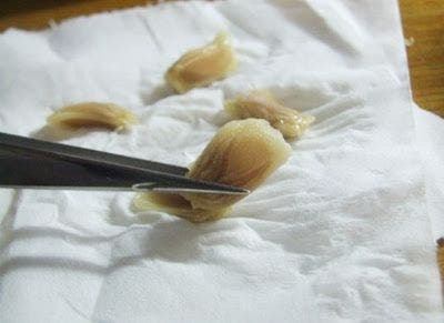 Laissez sécher les pépins sur du papier essuie-tout, puis ôtez-en la peau délicatement.