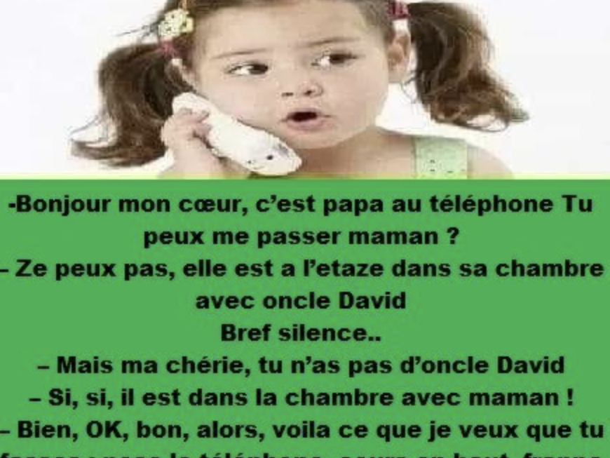 – Bonjour mon coeur, c’est papa au téléphone…. Tu peux me passer maman ?