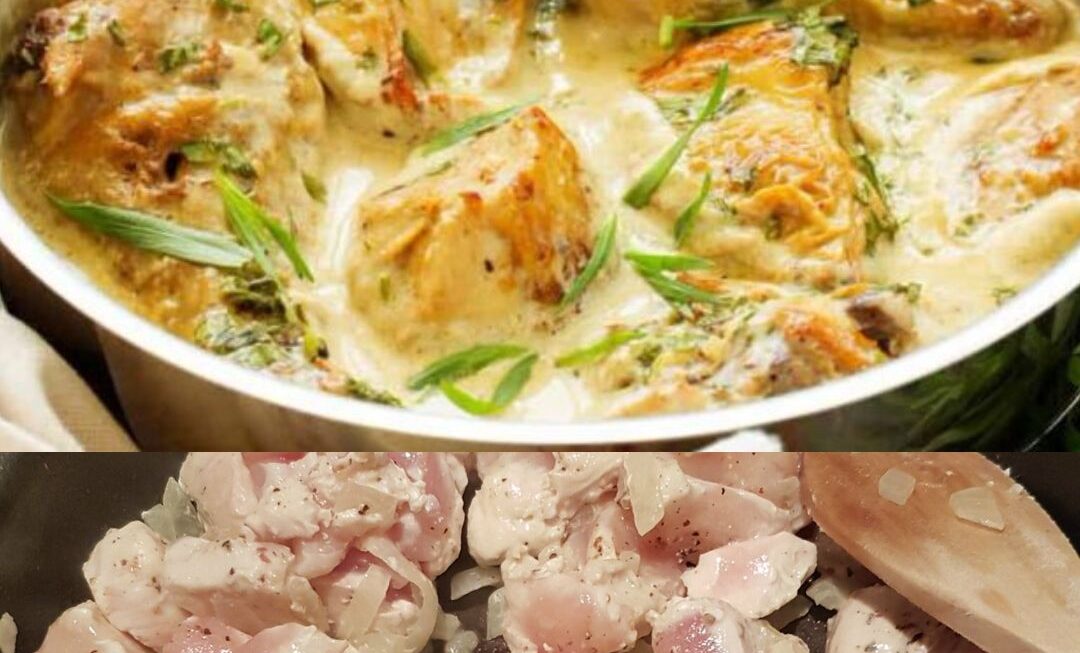 - Les blancs de poulet à l’estragon avec sauce crémeuse au vinaigre sont prêts à être servis.