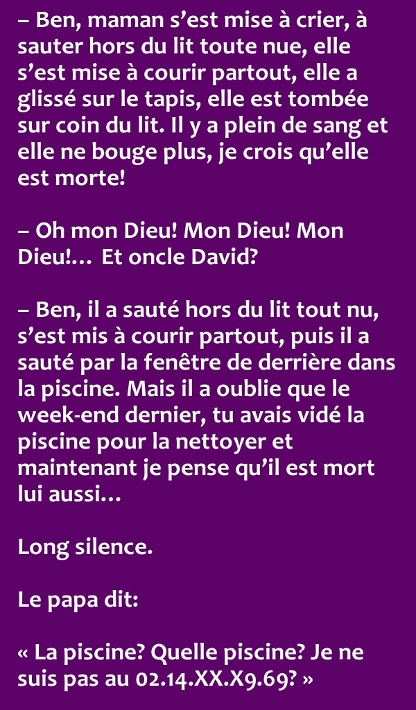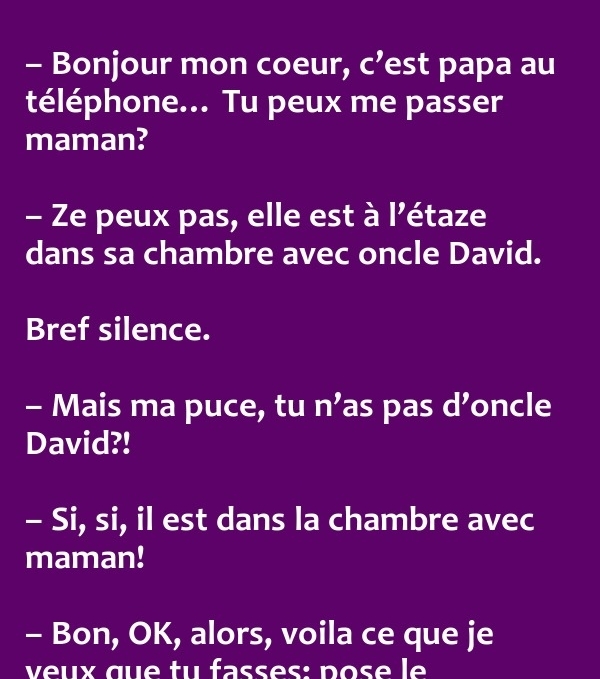 – C’est comme maman hier, heureusement qu’elle a tenu bon au lavabo, sinon le facteur l’emmènerait à la poste !!!