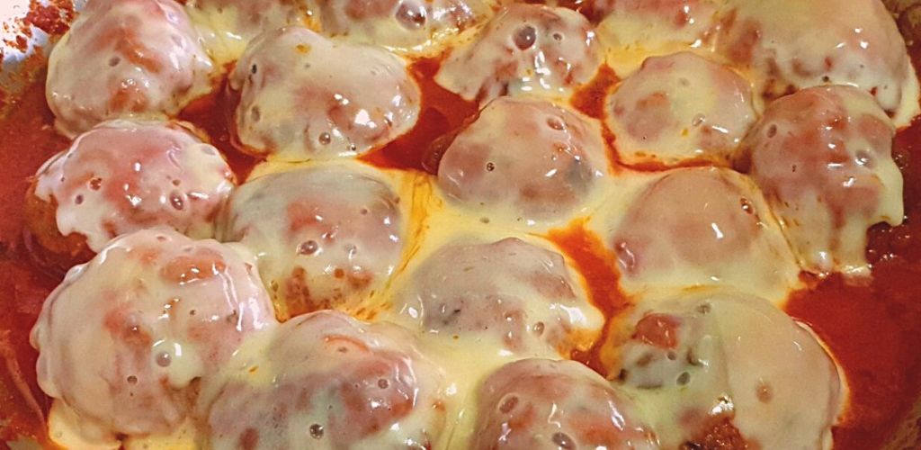 Ajouter ensuite les boulettes de viande et faire cuire. Enfin, couvrir avec le fromage fumé et faire fondre légèrement.