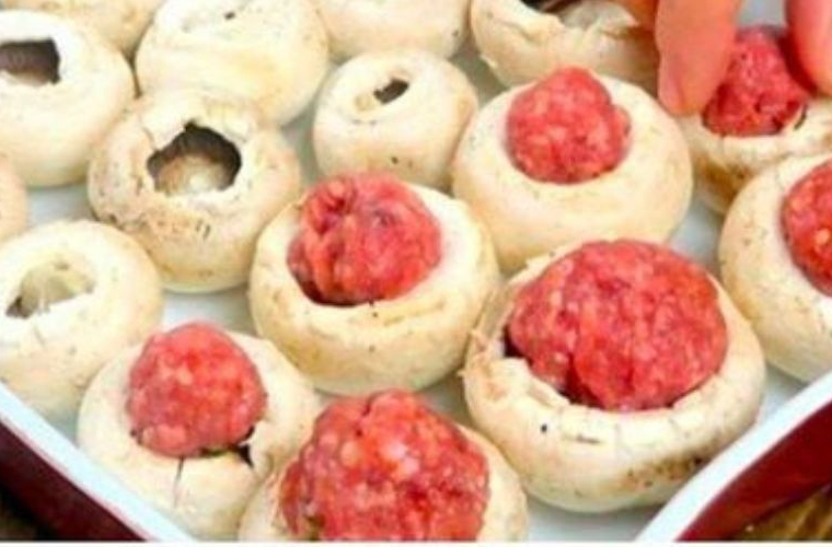 Videz les champignons et remplissez-les de viande hachée, décorez de fromage et enfournez. En quelques minutes seulement, vous pourrez préparer un délicieux plat appétissant !