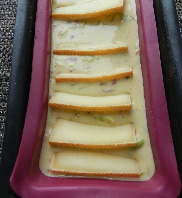 Disposer les tranches de fromage à raclette sur le dessus en les intercalant.