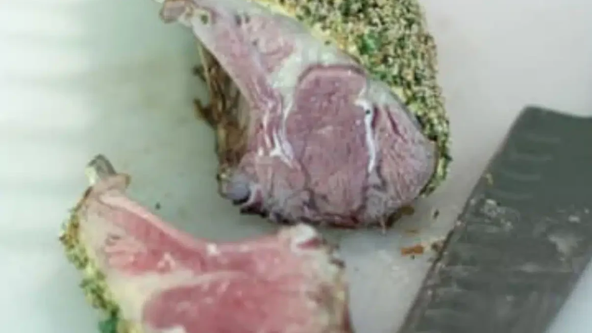 Coucher le carré d’agneau sur le côté moutardé, directement sur la persillade. Presser légèrement pour bien faire adhérer la persillade.