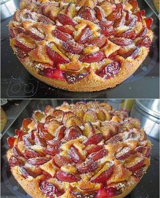 Insérez la pointe des demi-prunes dans la pâte bien tassée.