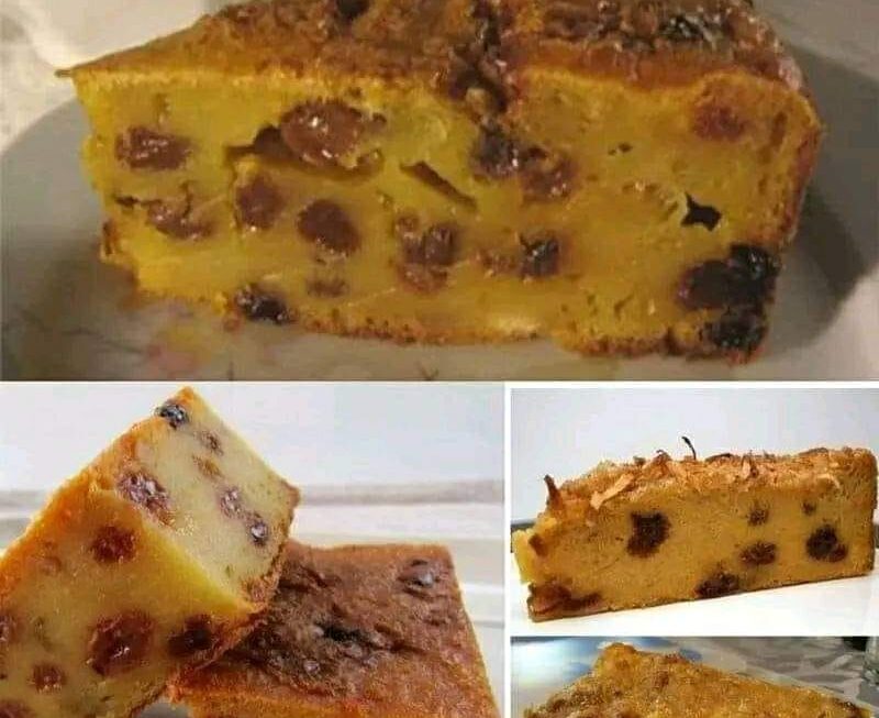 Dans un bol, faites tremper le pain dans le lait d’amande, le miel et la farine de maïs, puis battez les œufs entiers et mélanger le tout avec la vanille et les raisins.