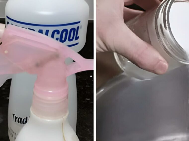- Pendant ce temps, mélangez le détergent liquide et l’alcool (ou le vinaigre de cidre de pomme).
