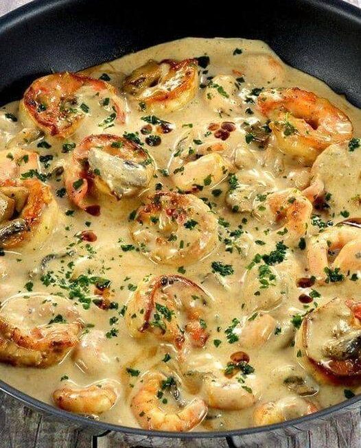 Ajoutez l’ail et le pastis, salez et poivrez selon vos gouts, faites réduire à 1/4 environ, ajoutez la crème, le persil et les crevettes, portez à ébullition, faites cuire une minute, goutez et corrigez l’assaisonnement si nécessaire