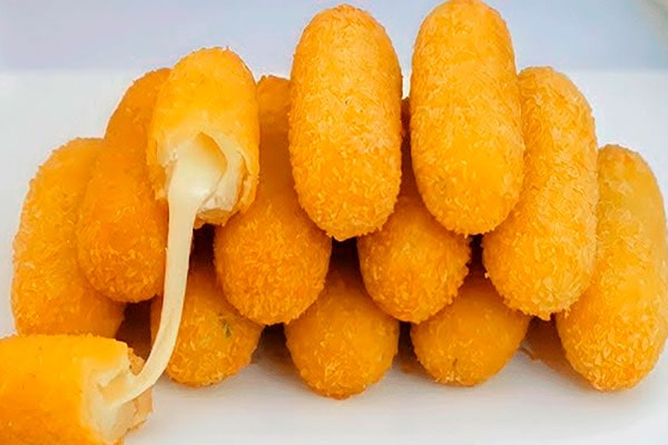 8. Faites frire les banderilles dans l’huile chaude jusqu’à ce qu’elles soient dorées et que la pâte soit cuite à l’intérieur, environ 3 à 5 minutes.