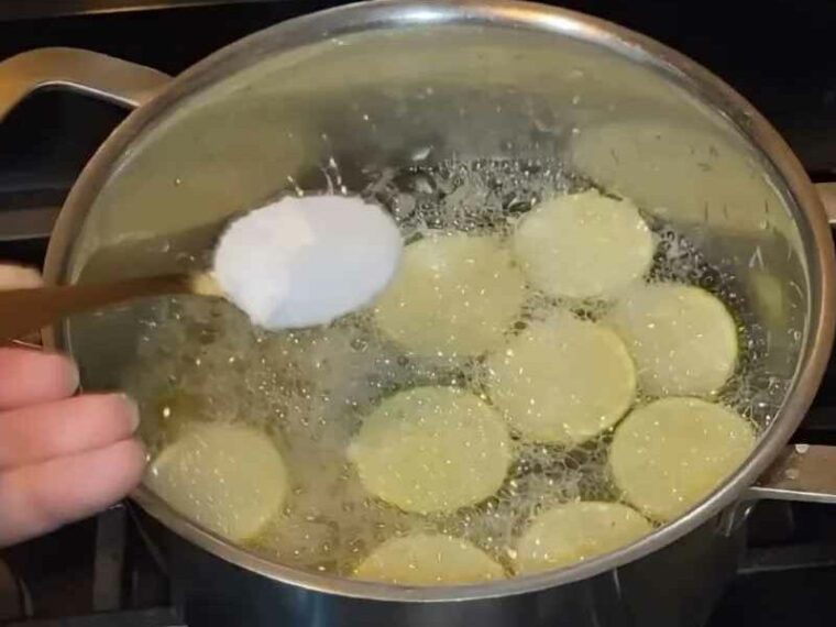 Pour la préparation, il faut tout d’abord mettre 1 litre d’eau dans une casserole, et la faire bouillir en ajoutant le jus de 5 citrons. 10 minutes après, vous allez ajouter le bicarbonate de soude (2 cuillères). Vous remarquez alors qu’une réaction effervescente se forme tout de suite, et donc il faut vraiment faire attention, car de l’eau bouillante peut sortir de la casserole et vous brûler. Laissez bouillir encore une dizaine de minutes avant de le retirer. Laissez refroidir, puis versez la solution dans un autre récipient, et ajoutez du vinaigre blanc et du liquide vaisselle.