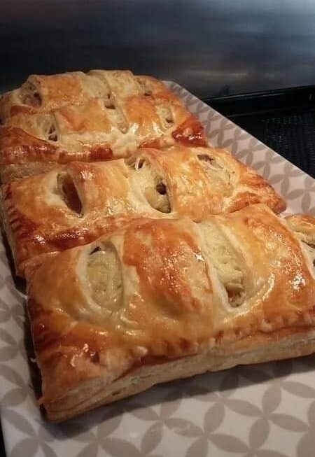 Ajouter les dés de jambon et les champignons. Mélanger. Mettre de la préparation sur la moitié de chaque carré. Parsemer de gruyère râpé. Refermer des feuilletés en soudant bien les bords. Dorer au jaune d’oeuf, faire éventuellement des “dessins” au couteau. Enfourner 20 à 30 minutes.