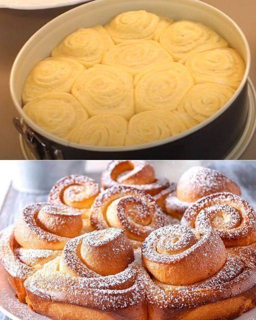 Etaler la pâte, la farcir et l’enrouler. Couper le rouleau et placer les morceaux dans le moule. Laisser lever jusqu’à ce que le volume ait doublé et cuire au four à 356°F (180°) pendant 20-25 minutes.