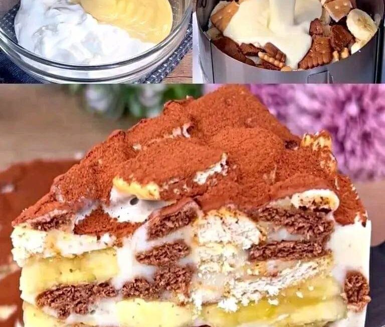 2. Émiettez les biscuits et mettez-les dans le moule, puis ajoutez les bananes.