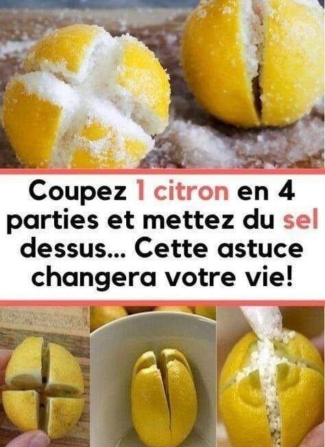 Couper le citron en 4 parties, mais pas à la fin parce qu’ils ne doivent pas se séparer. Mettez un peu de sel sur les morceaux et placez le citron dans votre cuisine.