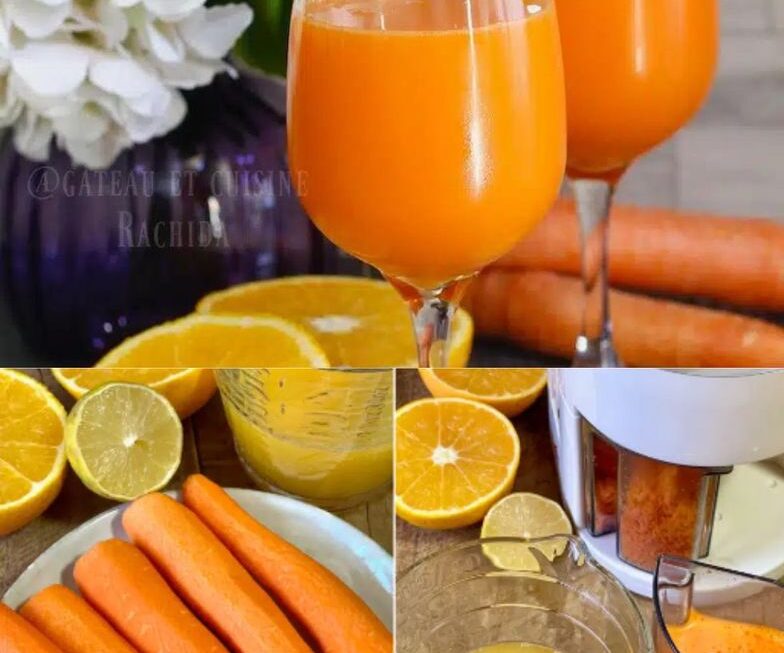 4. Passez le tout à la centrifugeuse et mélanger avec le jus d’orange.