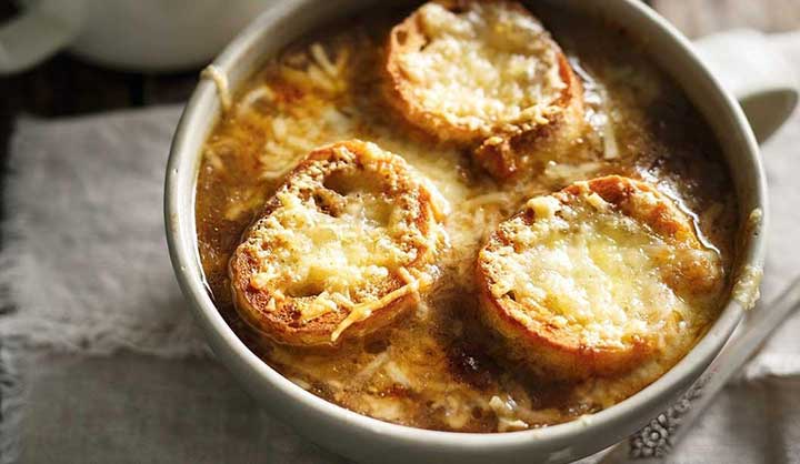 Pour les froides soirées d’hiver, quoi de mieux qu’un potage bien chaud ? Préparez la traditionnelle soupe à l’oignon gratinée en un tour de main. Servie bien chaude, elle en reste très légère, accompagnée de quelques croûtons.