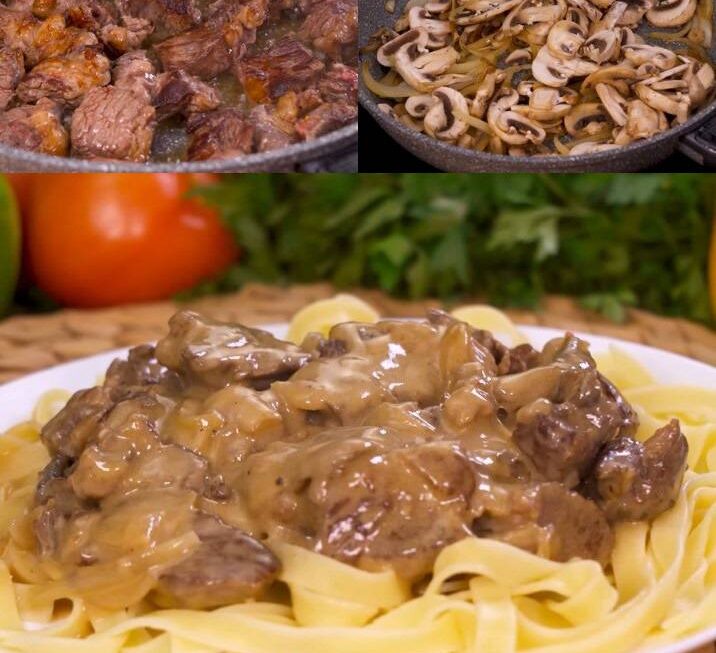 Placer la viande sur les pâtes et napper avec la sauce.