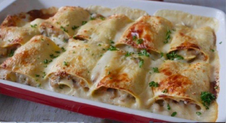 Lasagnes roulées au jambon et champignons