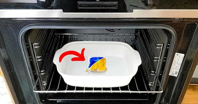 Nettoyer le four avec une capsule pour lave-vaisselle :