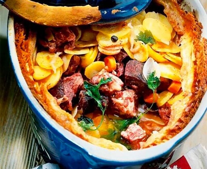 Présentation : Lors de la dégustation, brisez le lut (pâte) devant vos invités pour libérer les merveilleux arômes du baeckeoffe.