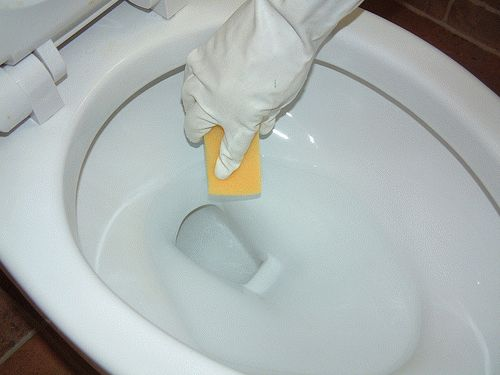 La composition est versée dans le coude des toilettes, cela doit être fait avec précaution afin que la solution ne pénètre pas sur les parois de la plomberie. L’eau bouillante crée une différence de température qui peut provoquer la fissuration du vernis à la surface des toilettes.