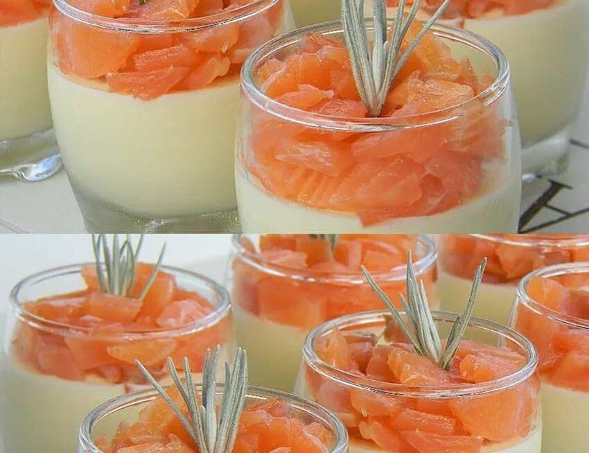 Coupez le saumon fumé en petits dés et répartissez-les sur la mousse d’asperge dans les verrines. Décorez avec un brin d’aneth ou autre aromatique à votre goût.
