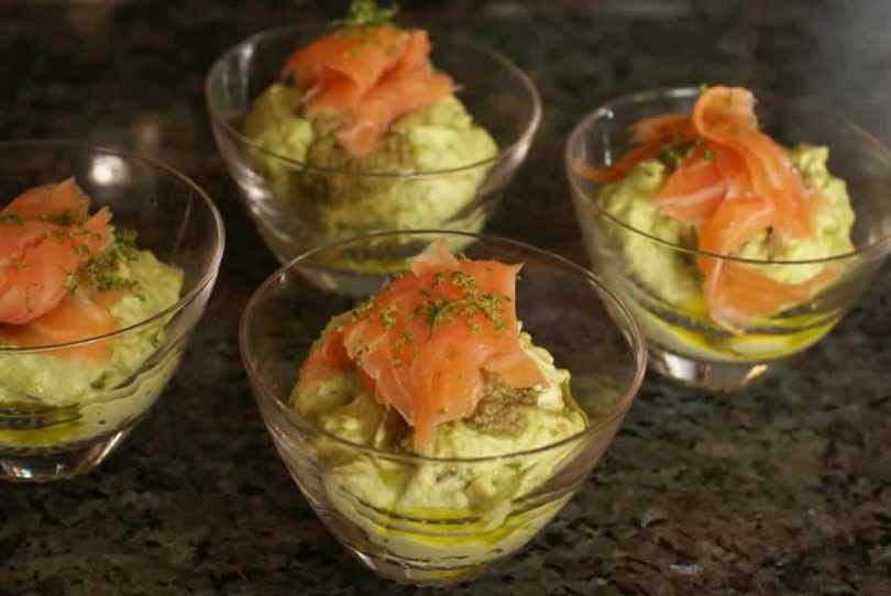 Pour épatez vos convives lors d’un repas de fête, confectionnez de très jolies verrines de mousse d’avocats et saumon fumé. Rapides et facilement à préparez, elles plairont au plus grand nombre grâce à l’association avocat saumon fumé. Vous pourrez les servir en entrée ou en petites verrines ou en cuillères à l’apéritif.
