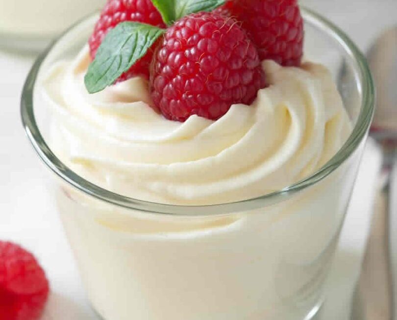 Répartir dans des verrines et décorer avec quelques framboises.