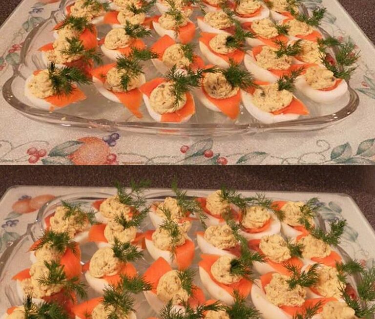 Les œufs farcis au saumon fumé font de délicieuses bouchées. Le goût du saumon et de l’aneth s’agence exceptionnellement bien à la texture crémeuse des jaunes d’œufs.