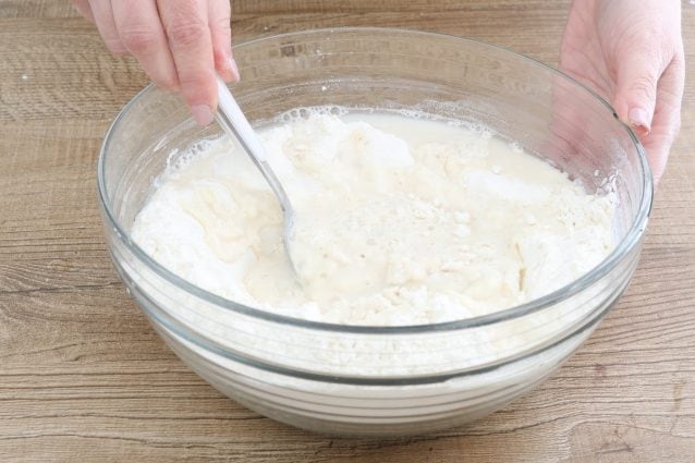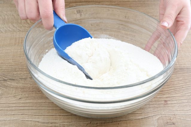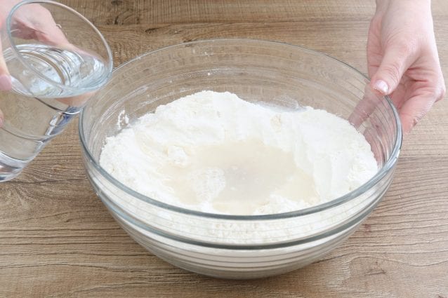 Mélanger la farine tout usage et le Manitoba dans un grand bol1.