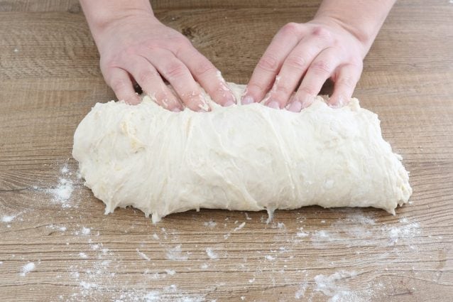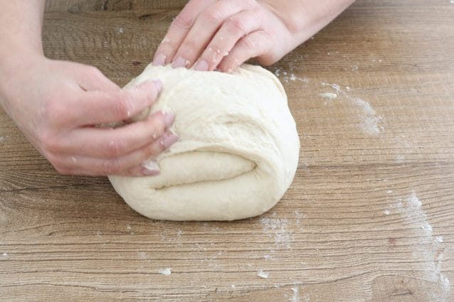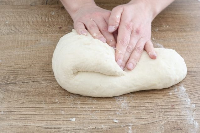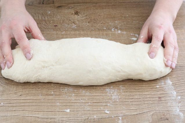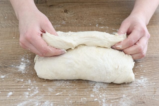 Rouler la pâte sur elle-même comme pour former un pain13.
