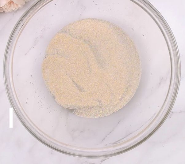 Mélanger la levure avec de l’eau tiède et du sucre et laisser reposer jusqu’à ce qu’elle mousse.