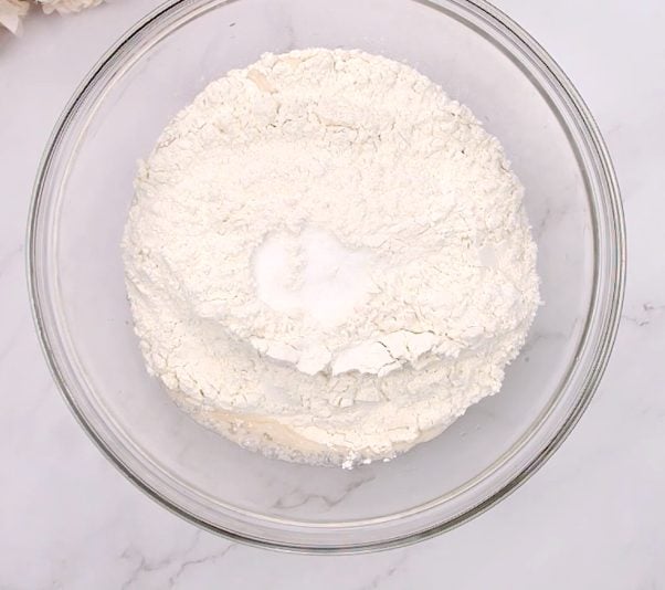 Fouetter la farine avec le sel, puis incorporer la solution de levure.