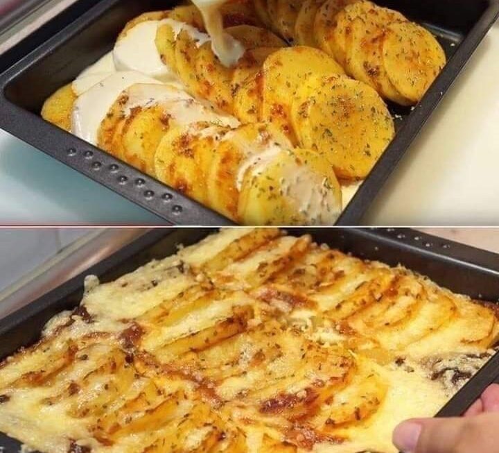 Dans un bol, battre les œufs avec le sel, le poivre et la crème. Verser le mélange sur les pommes de terre et cuire à 400°F (200°) pendant 50/60 minutes.