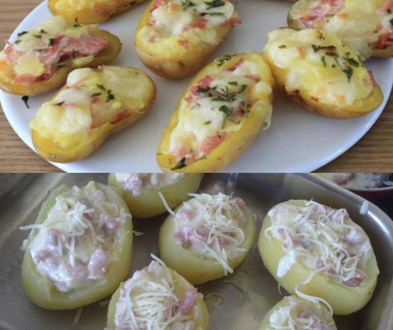 Les pommes de terre farcies sont bien connues. Fréquemment, elles sont de grosses tailles et la garniture utilise des lardons ou des dés de jambon.