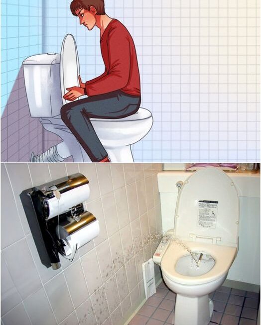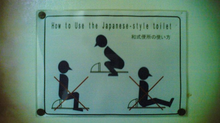 Les touristes sont confrontés à un dilemme lorsqu’ils utilisent des toilettes de style japonais. Il est impossible de s’asseoir pleinement sur de telles toilettes, il faut prendre la position « aigle » et faire face au réservoir, et non à la porte, comme c’est la coutume dans d’autres pays. Des panneaux spéciaux installés dans les toilettes en informent.