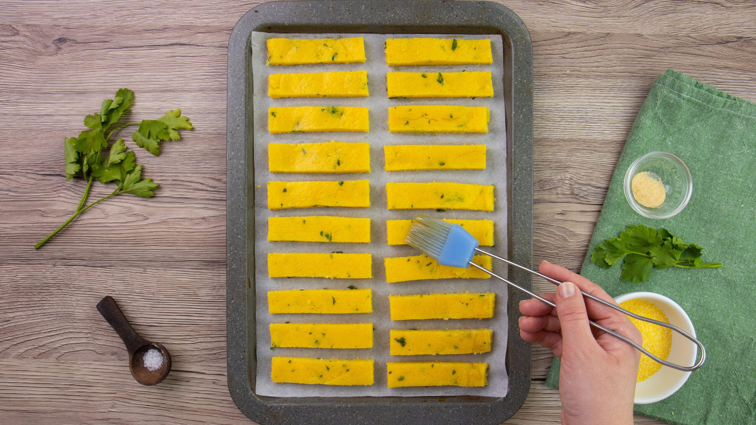 Huile : l’huile est appliquée sur la polenta avant la cuisson, elle aide à rendre les frites croustillantes.