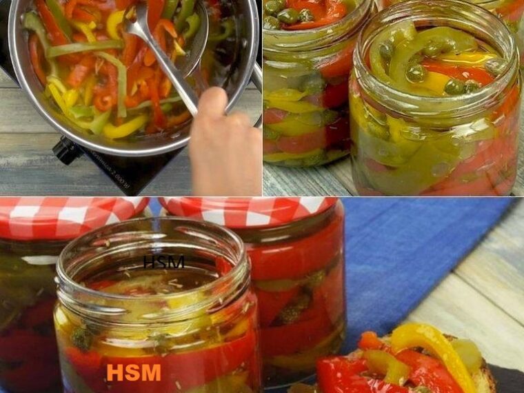 Placer les poivrons dans un bol, ajouter les câpres, l’origan, le sel et l’huile. Mélangez très bien.