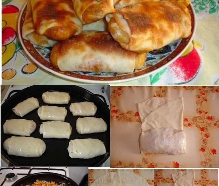 Étaler sur la pâte un peu de la farce. Enrouler délicatement et bien fermer les bouts.