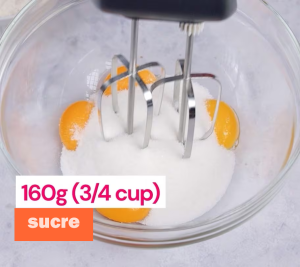 • Mettre les jaunes d’œufs dans un bol propre et ajouter le sucre.