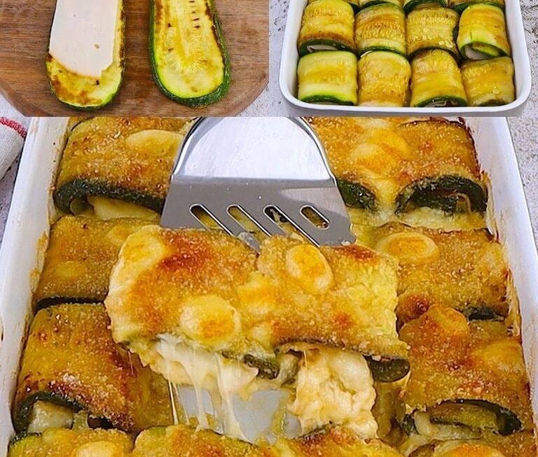 4. Transférez les tranches de courgettes sur la planche à découper et disposez le morceau de poulet rôti et une tranche de fromage. Roulez chacun.