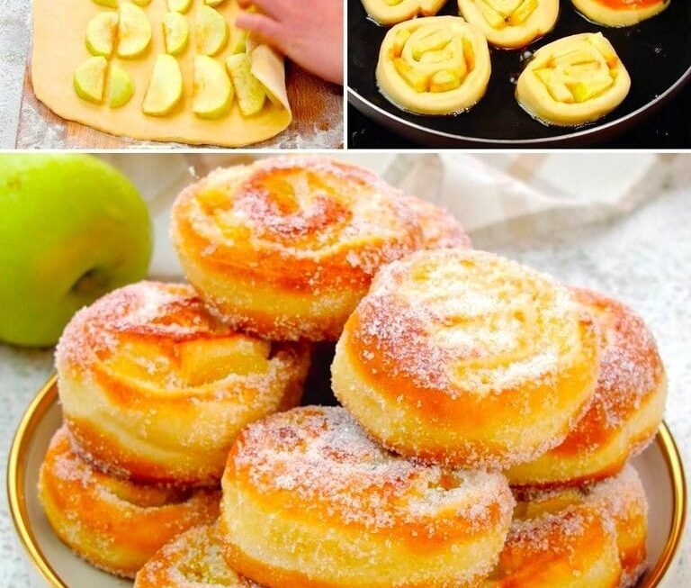 Frire les rouleaux aux pommes pendant 3 minutes de chaque côté ou jusqu’à ce qu’ils soient dorés. Rouler dans le sucre avant de servi