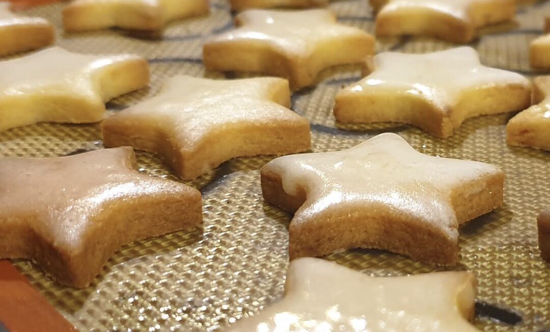 8. Une fois refroidis, glacez les sablés avec le mélange de sucre glace et de citron. Décorez éventuellement avec des décorations de Noël.